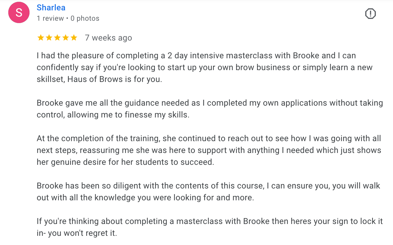 This is the exact system, techniques, and standards used inside a successful 7 year brow business.